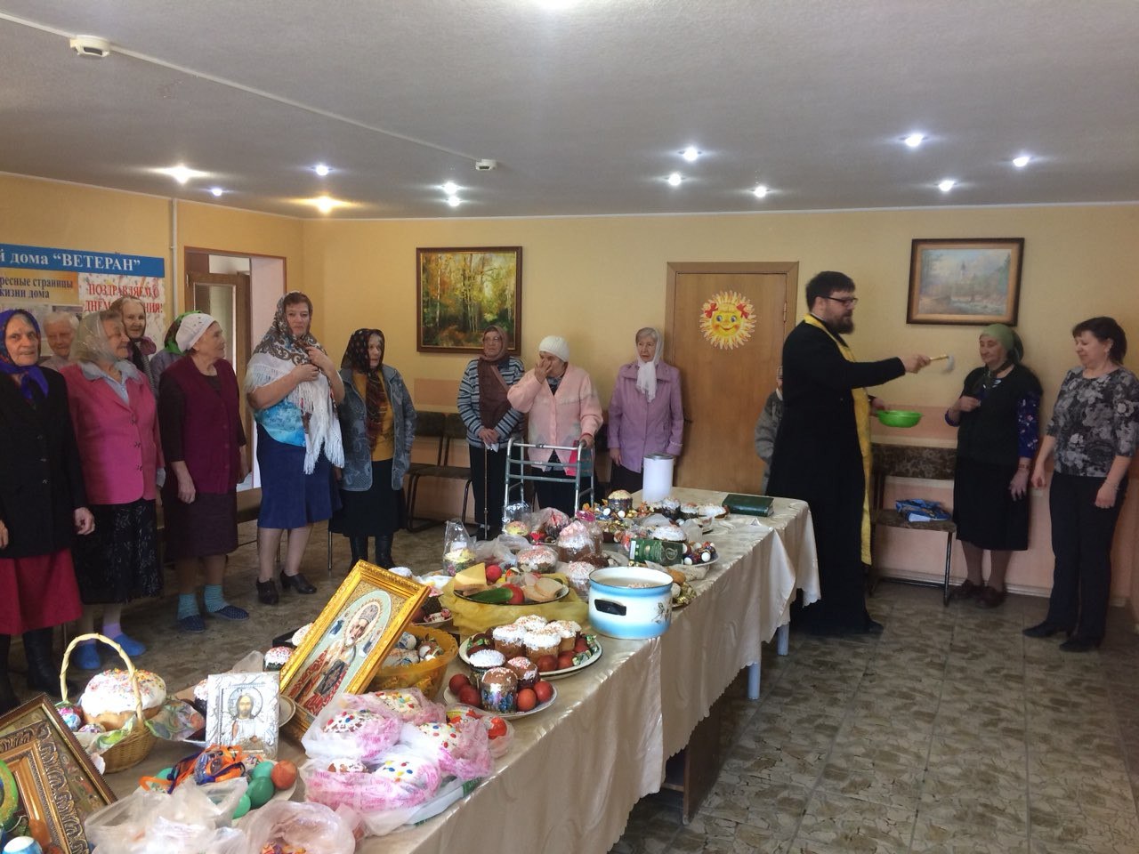 Настоятель храма Живоначальной Троицы г. Магнитогорска иерей Феодор Терещенко посетил специализированный Дом ветеранов, учреждение ПАО «Магнитогорский металлургический комбинат», где сердечно поздравил пожилых людей со Светлым Христовым Воскресением и освятил пасхальную снедь. Иерей Феодор напомнил жителям Дома милосердия, что для них в Дом ветеранов ежедневно открыта домовая часовня.